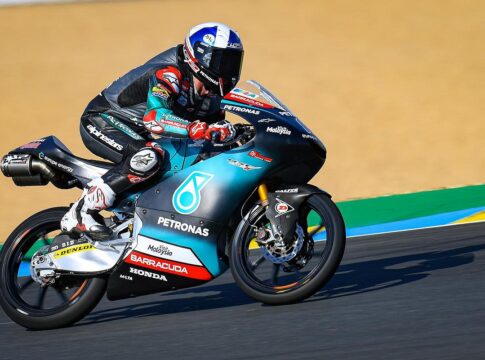 Con la lluvia amenazando y la pista a 19ºC se ha dado la salida a una carrera de Moto3 contra-reloj en la que Tony Arbolino ha sido el más rápido en salir aunque Ayumu Suzuki no ha tardado en cogerle el relevo en una primera vuelta en la que Ai Ogura, que estaba tercero, se ha caído de manera espectacular generando una peligrosa situación cuando la moto ha vuelto a la pista. Afortunadamente, todos los pilotos han podido evitarla y la carrera ha continuado sin mayor problema.