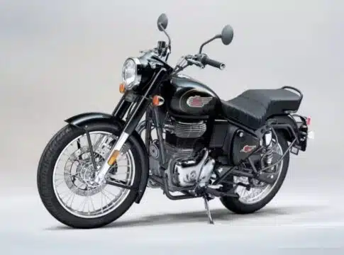 Como colofón, este modelo presenta un emblema en 3D en el depósito y los paneles laterales, junto con rayas doradas que adornan tanto los costados como la parte superior del tanque. En cuanto al rendimiento, la Bullet 350 Battalion Black mantiene el mismo motor monocilíndrico de 349 cc refrigerado por aire y aceite, capaz de generar 20,2 cv de fuerza y 27 Nm de torque, acoplado a una caja de cambios de 5 velocidades. En términos de frenado, cuenta con frenos de disco en la parte delantera y de tambor en la parte trasera, con un sistema ABS de un solo canal.