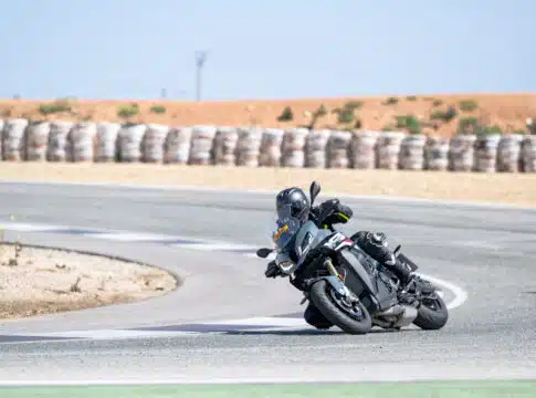 En la charla informal tras la presentación, nos dimos cuenta de que ni siquiera era una sugerencia: al día siguiente, rodaríamos en el circuito de Cartagena con la misma moto y las mismas presiones que durante la ruta. Es la mejor manera de mostrar que, más que una manera de hablar, es una de las características del CSA5.